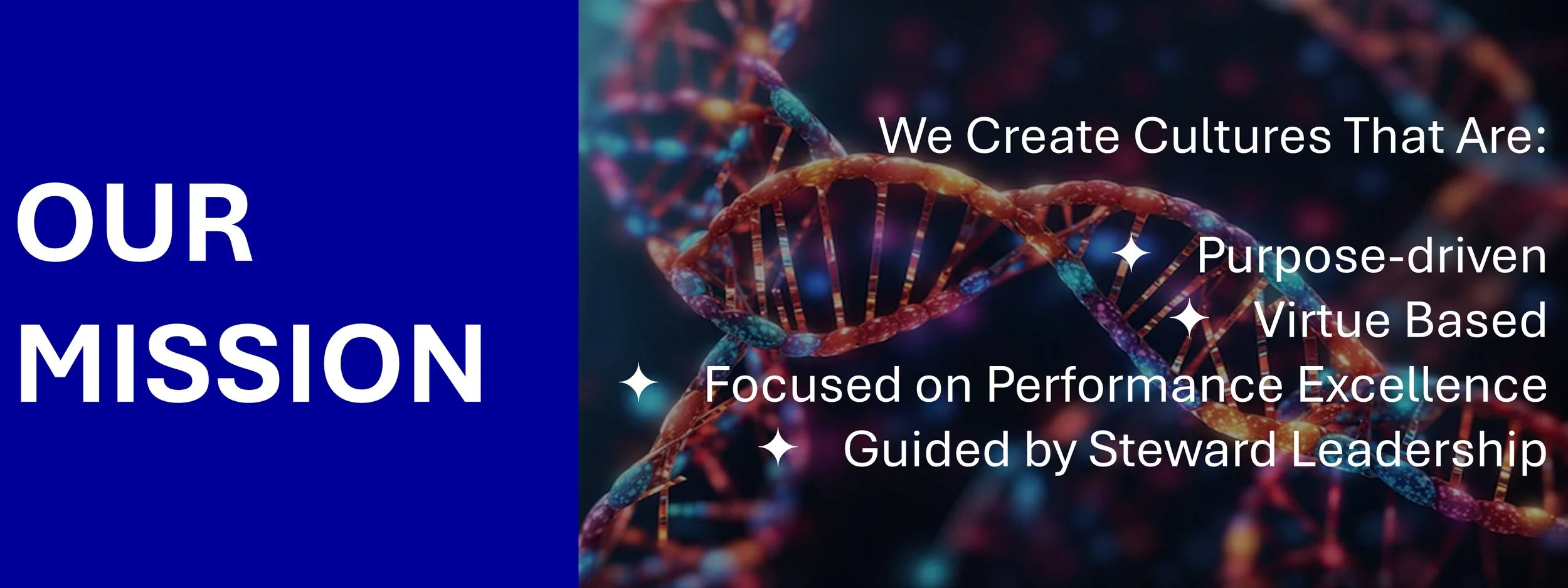 Grounded in purpose, virtues, and values, CultureGenetix serves as a trusted transformation partner across industries. We help leaders cultivate resilient cultures that adapt boldly, lead with clarity, and stay anchored in what matters most.